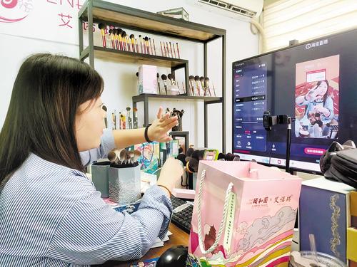 “這款以梅花鹿紋為裝飾的化妝刷,是咱家與頤和園聯(lián)名的六合太平系列套刷,采用人造纖維,柔軟蓬松……”11月3日上午10時許,河北省滄州市青縣馬廠鎮(zhèn)東姚莊村的一個直播間里,主播苑慧妍正手持“艾諾琪”品牌化妝刷進行直播。