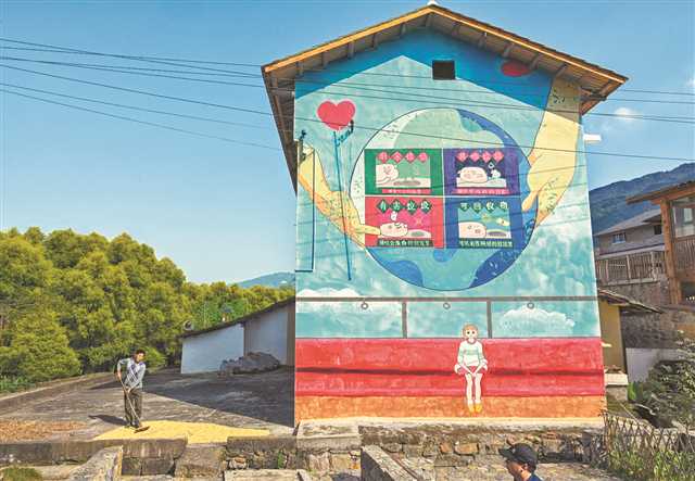 藝術(shù)家在北碚區(qū)柳蔭鎮(zhèn)東升村設(shè)計(jì)的墻繪,與周遭環(huán)境相融相洽 記者 萬(wàn)難 攝