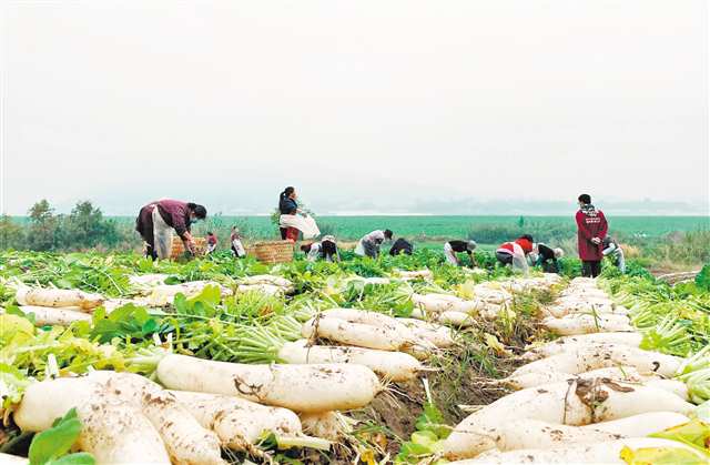 銅梁區(qū)高樓鎮(zhèn)涪江河畔中壩,農(nóng)民采收蘿卜(資料圖片)通訊員 趙武強 李拉拉 攝