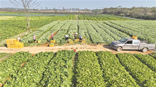 陽春三月,在各地陸續(xù)開展春耕春播之際,平南縣東華、官成等鄉(xiāng)鎮(zhèn)的部分田間地頭,利用冬閑田種植的各類蔬菜陸續(xù)成熟上市,菜農(nóng)們正忙著采收、搬運(yùn)、過秤、裝車。去年11月以來,平南縣實(shí)施冬季種養(yǎng)“十百千萬”工程,全面整合資源,因地制宜以10家龍頭企業(yè)為“頭雁”,推動(dòng)100家以上經(jīng)營(yíng)主體開展冬季蔬菜、小龍蝦、家禽、家畜種養(yǎng),帶動(dòng)1000戶以上農(nóng)民增收,實(shí)現(xiàn)冬種10萬畝、冬養(yǎng)2萬畝以上,助推農(nóng)業(yè)增產(chǎn)、農(nóng)民增收。