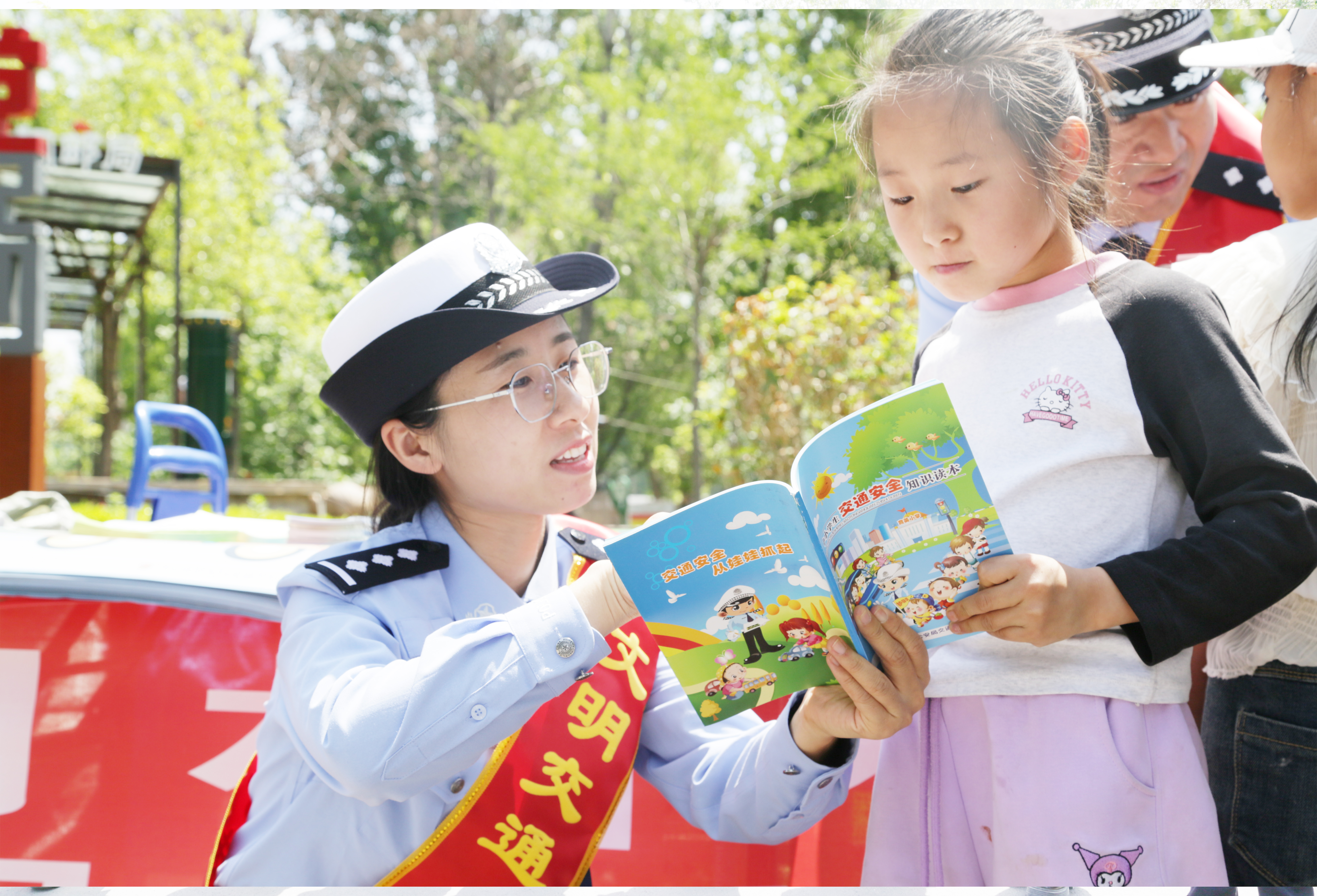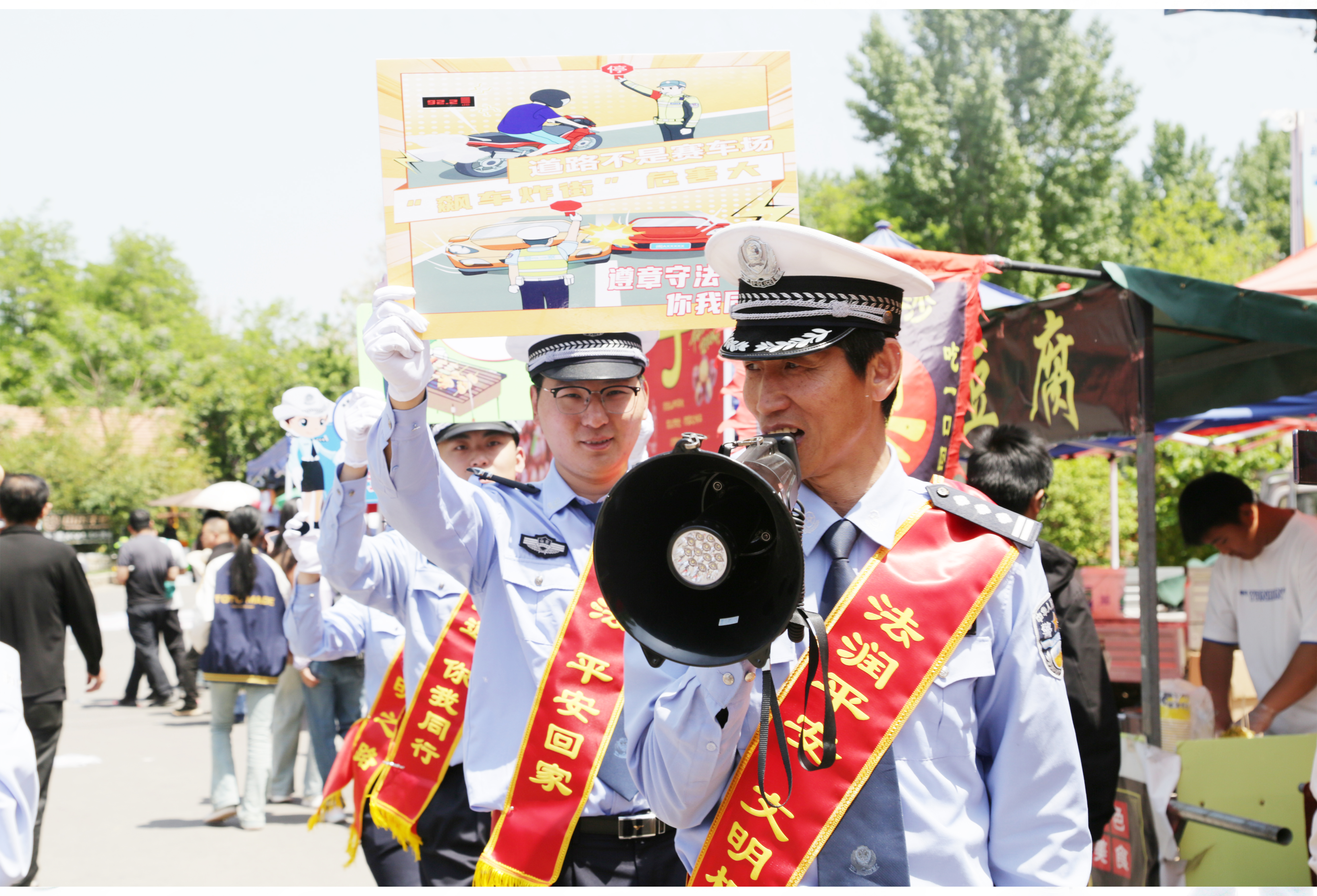 現(xiàn)場組織了交通安全一條街活動(dòng),擺放便民服務(wù)臺,懸掛交通安全手抄報(bào)、設(shè)置酒醉駕體驗(yàn)、九宮格、套圈、盲區(qū)等4個(gè)互動(dòng)體驗(yàn)區(qū),在主要路口宣傳民警和小交通安全宣傳員開展道路交通宣傳勸導(dǎo),參與群眾達(dá)2000余人次。
