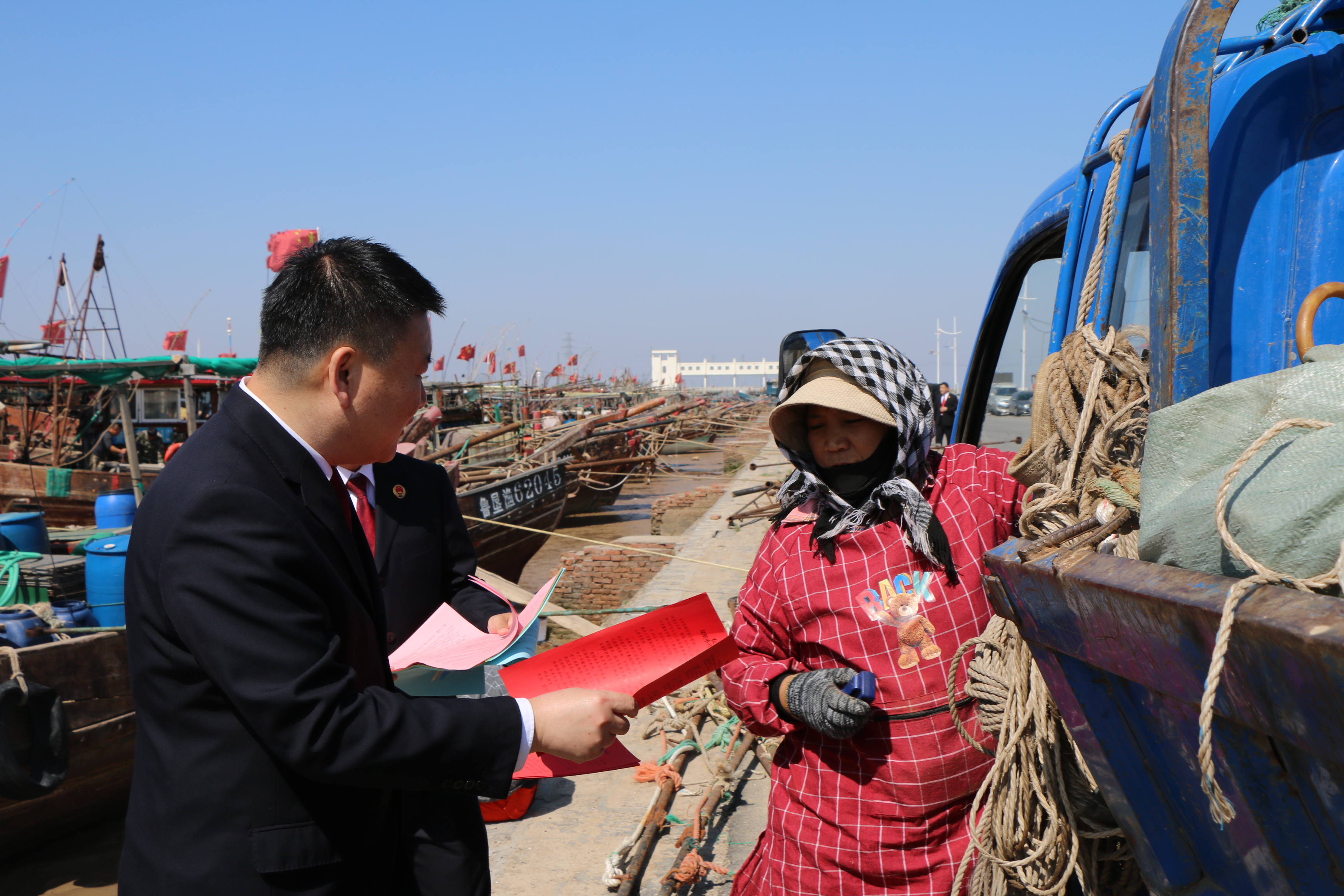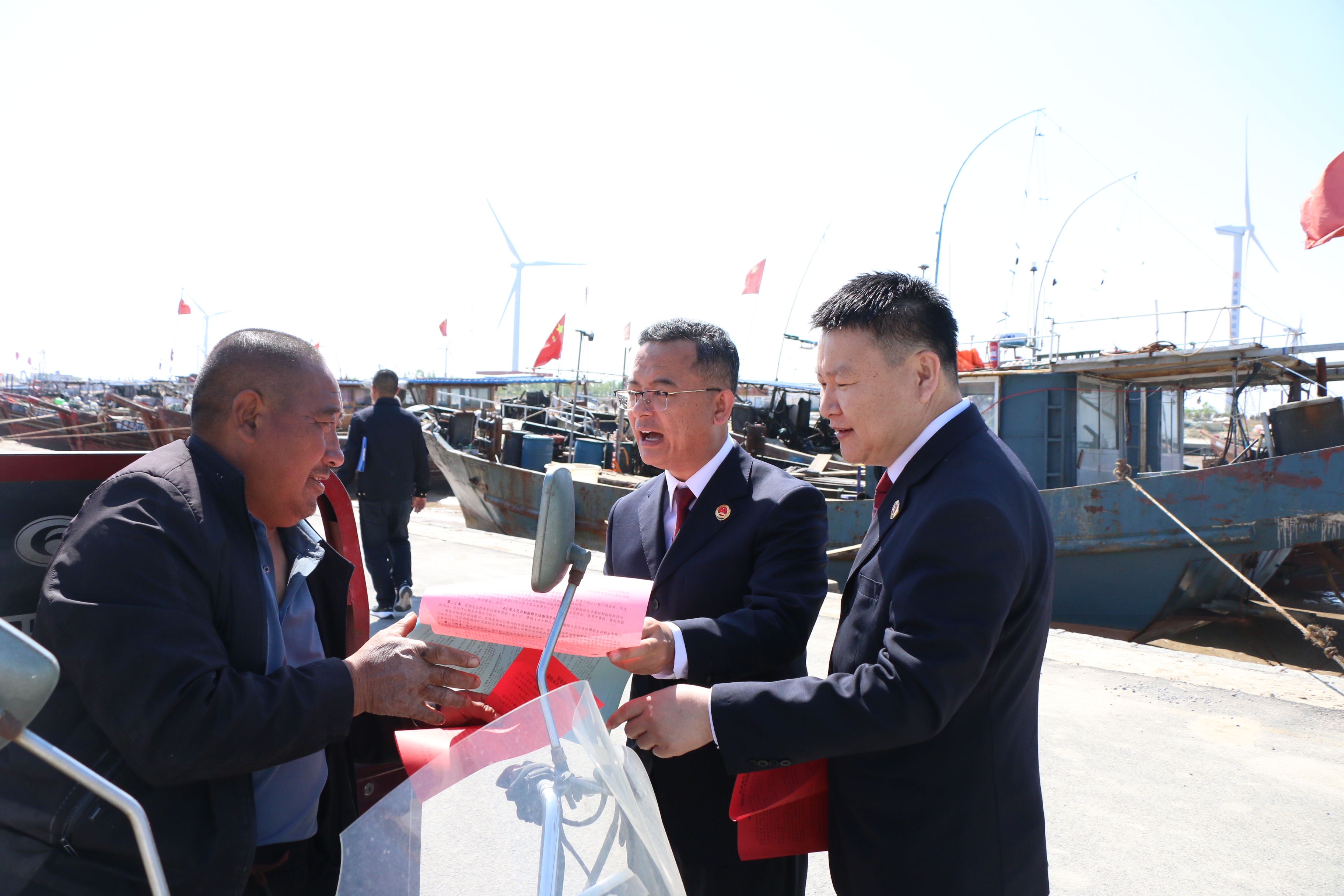檢察官通過懸掛宣傳橫幅、發(fā)放宣傳冊、以案釋法宣講等方式,向漁民講解伏季休漁相關(guān)法律法規(guī)和案例,幫助其增強守法自覺和生態(tài)保護(hù)意識。