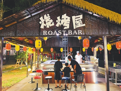 近日,游客在才存共享農莊內的鄉(xiāng)村酒吧街消費 記者 高懿 攝
