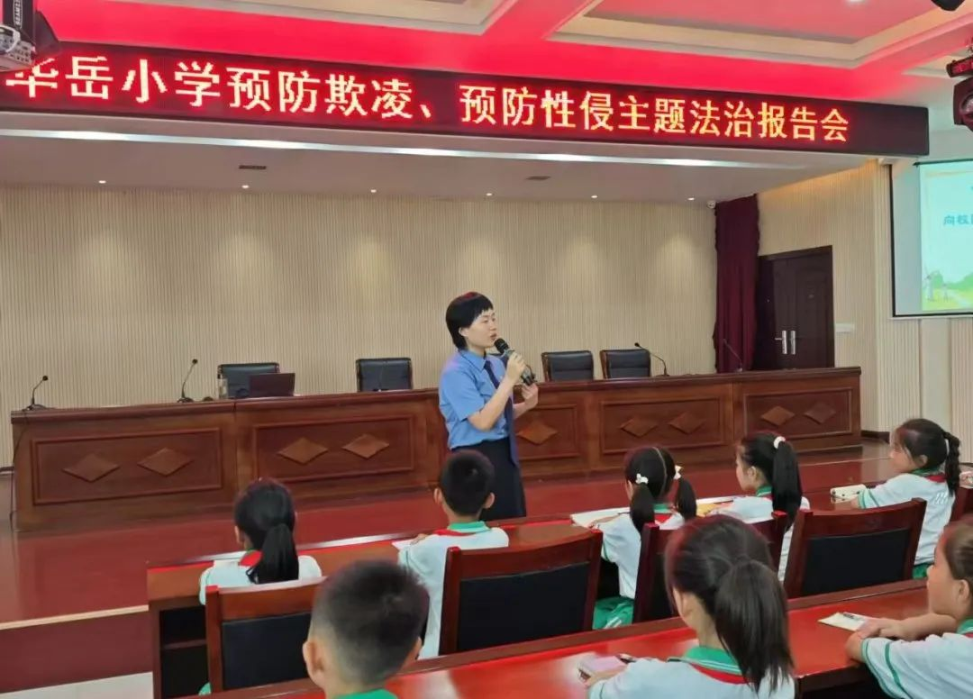 九月是秋風(fēng)送爽的季節(jié),也是同學(xué)們新學(xué)期的開始。新學(xué)期、新開始,為進(jìn)一步凈化校園環(huán)境,杜絕校園欺凌行為發(fā)生,不斷提高青少年的法治意識(shí)和自我保護(hù)能力。2024年9月9日下午,陜西省渭南市華陰市人民檢察院未檢干警受邀來(lái)到華岳小學(xué),開展新學(xué)期的第一堂法治課。