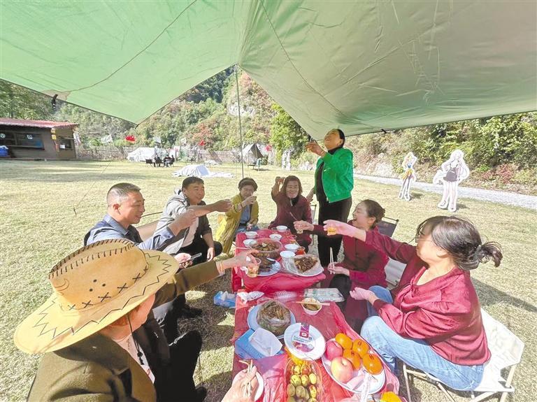 “我們的戶外特色帳篷‘星象’,一到節(jié)假日就得早早預(yù)訂?!鄙耠[谷露營基地負(fù)責(zé)人胡桃根說,今年前10月,露營基地共接待游客10萬人次,帶動周邊20多名村民就業(yè)增收,也讓村里的特色農(nóng)產(chǎn)品賣上了好價錢。