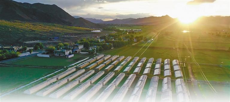 在西藏日喀則市白朗縣巴扎鄉(xiāng)彭倉村,170多座溫室大棚鱗次櫛比,大棚內(nèi)番茄、黃瓜、辣椒等作物長勢喜人。