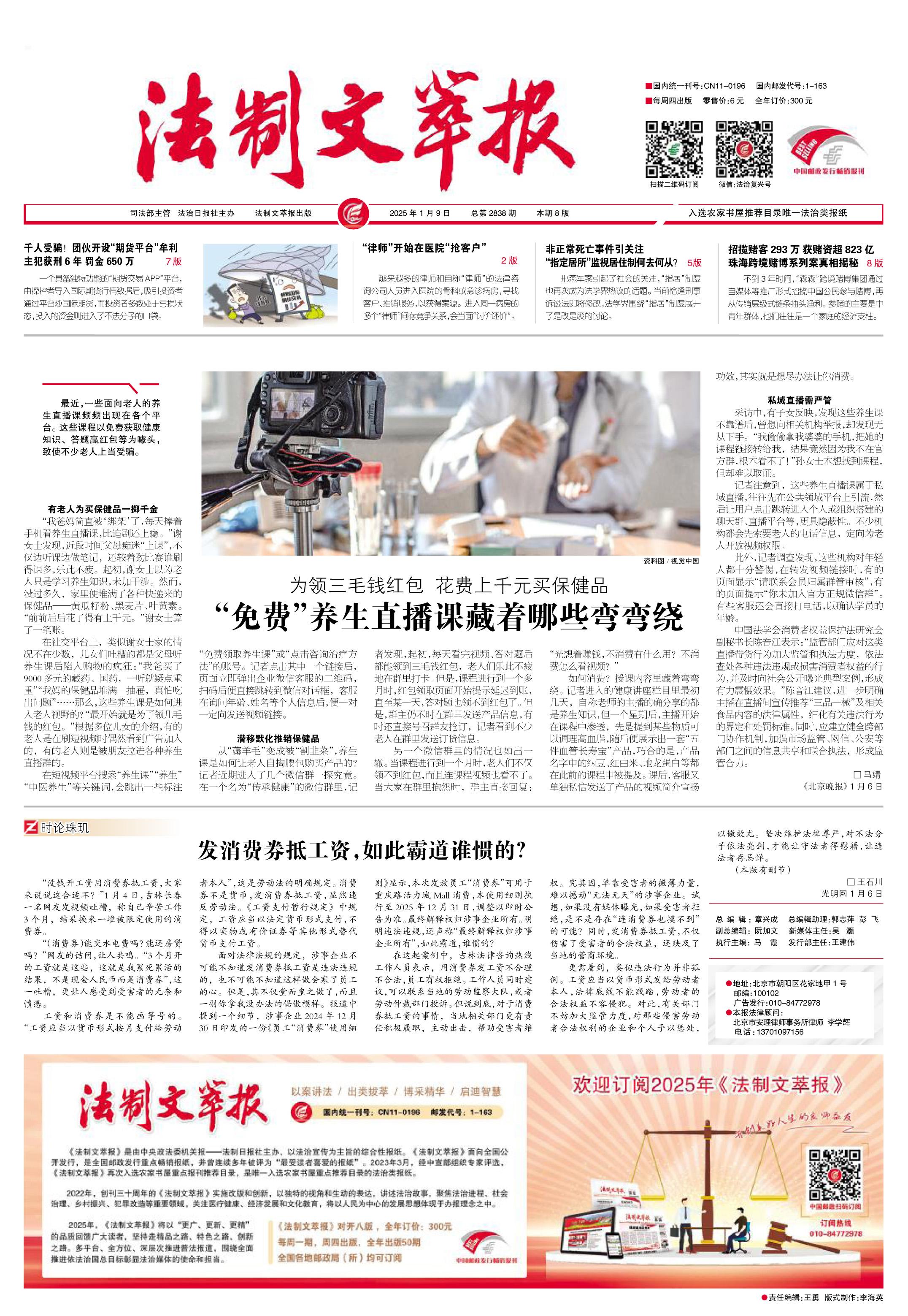 2025年1月9日《法制文萃報》總第2838期1版