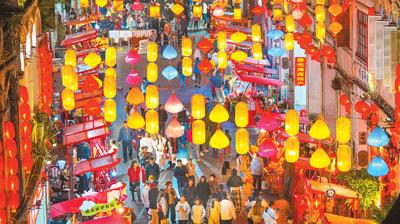 新春佳節(jié)臨近,海南省??谑胁勐纺曦浺粭l街張燈結(jié)彩,吸引了眾多市民游客。張茂 攝