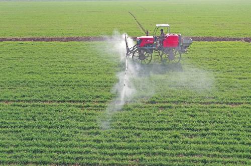 安徽農(nóng)墾華陽河農(nóng)場開展社會化服務(wù)的田地里,農(nóng)機(jī)手正在進(jìn)行小麥植保作業(yè)(受訪者供圖)