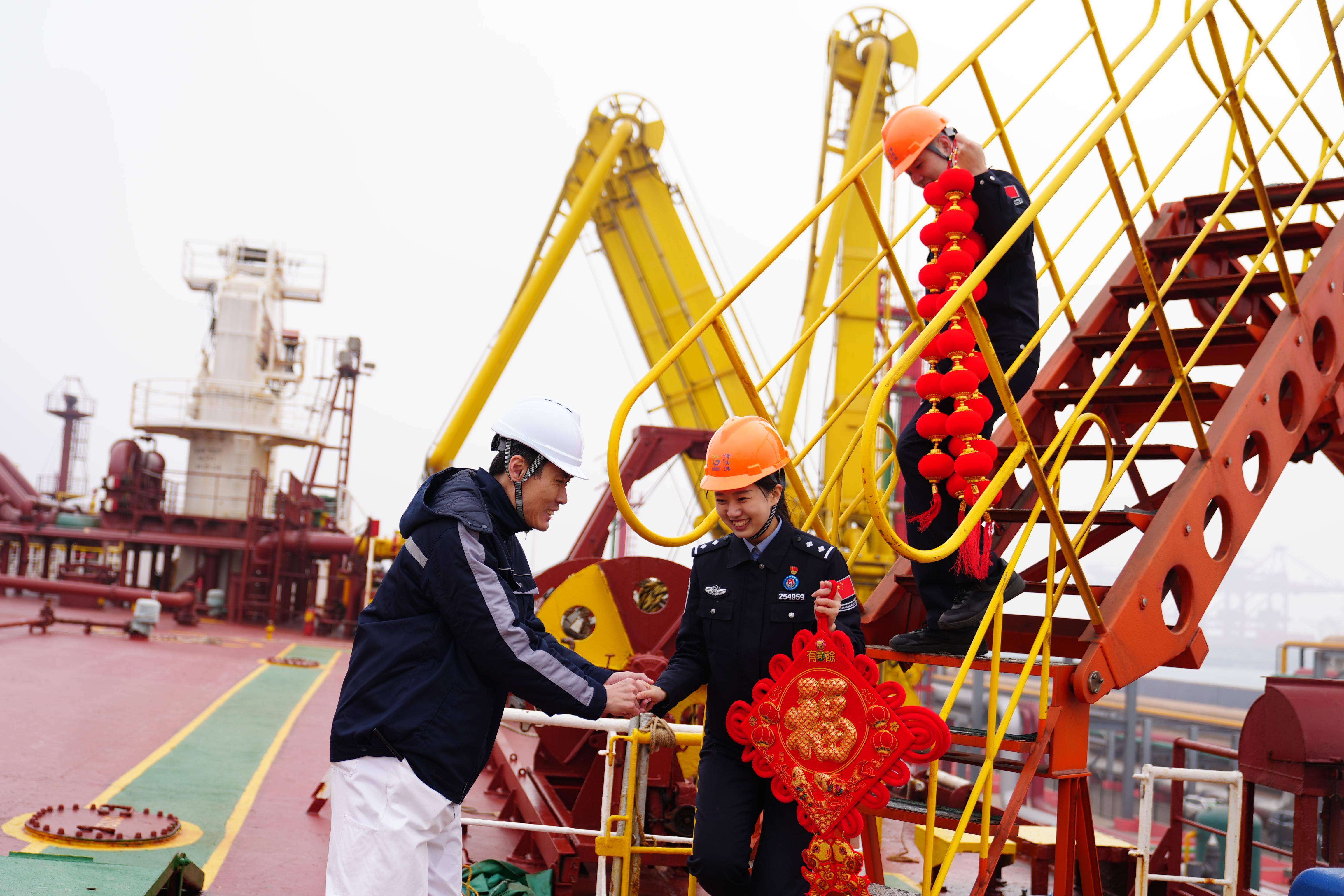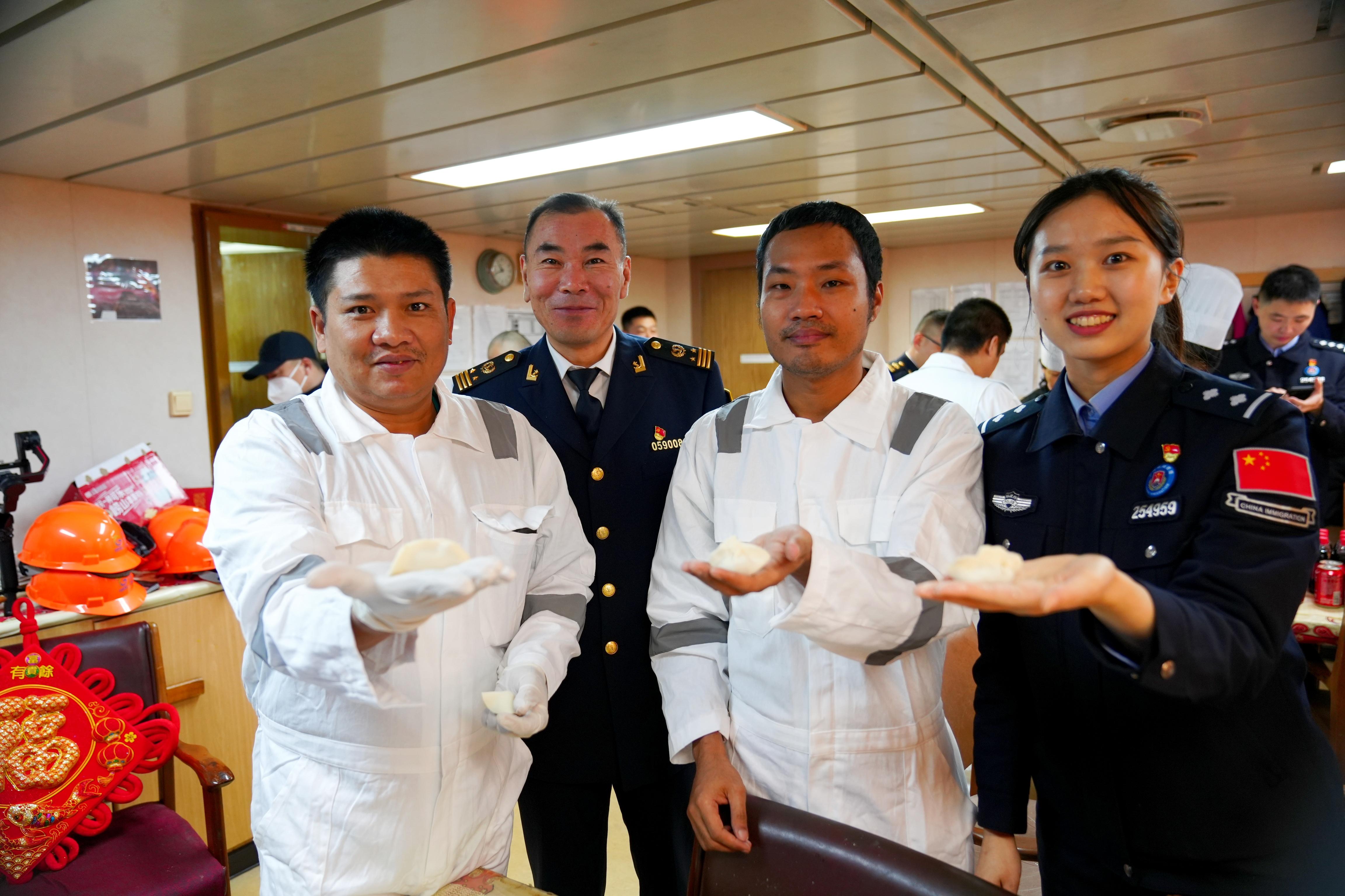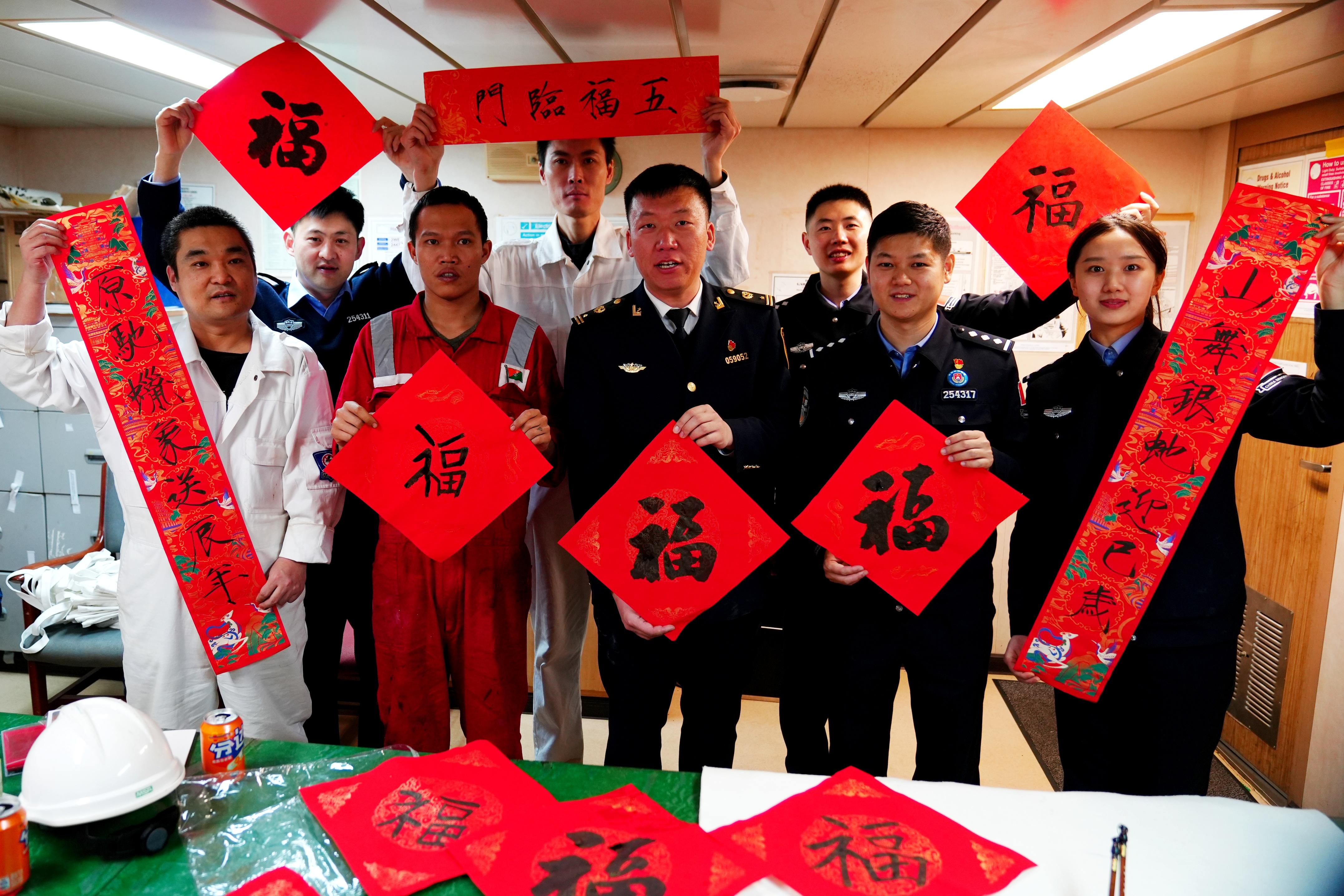 “今天是農(nóng)歷小年,我們這次過來,打算和船員們一起寫福字、包餃子,讓奔波在外的中國船員提前感受家鄉(xiāng)過年的氛圍,向外籍船員分享咱們中國民俗文化。”董家口邊檢站移民管理警察介紹。