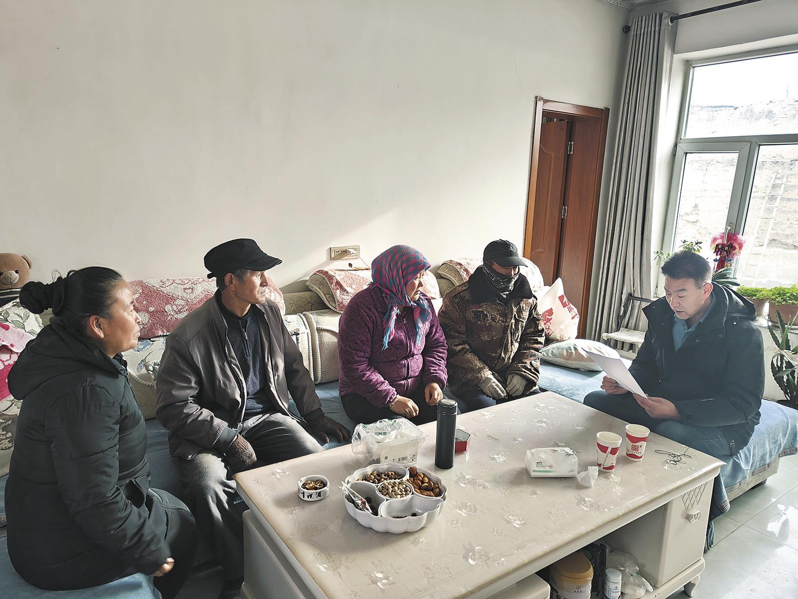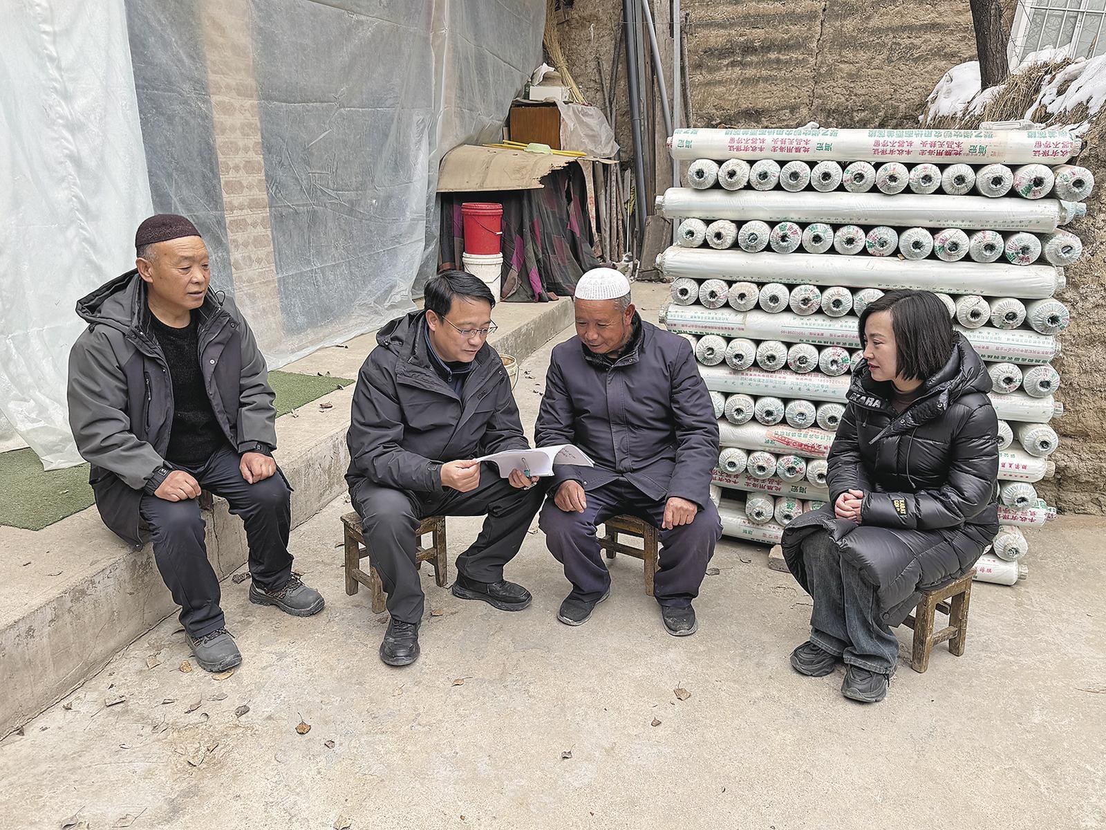 “鄉(xiāng)親們,今天咱們開展‘一宣三促’活動,喧一喧一號文件精神,比如說‘大力發(fā)展綠色、特色農產品種養(yǎng),推進農產品加工業(yè)轉型升級,實施農業(yè)品牌精品培育計劃,打造特色農業(yè)產業(yè)集群,提升農業(yè)產業(yè)化水平’這一條,對咱們農民來說是開春以來的大喜訊?!?月24日一大早,青海省海東市民和回族土族自治縣巴州鎮(zhèn)祁家村村委會掛起了“一宣三促”橫幅,駐村第一書記孔德香和群眾自備小板凳相聚在村廣場上,拉開了“板凳課堂”的序幕。