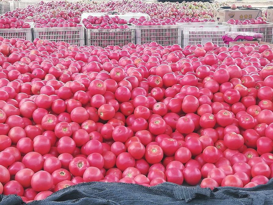 仲秋,廣袤田野間,顆顆西紅柿如紅寶石般奪目,掛滿枝頭。各地商戶紛至沓來,一筐筐西紅柿映照著村民的歡顏,盡顯豐收之喜;