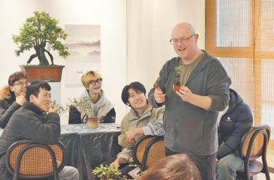 茅檐石壁的傳統(tǒng)民居,造型多變的川派盆景,位于四川崇州市觀勝鎮(zhèn)的嚴(yán)家彎灣,人和、景美、風(fēng)光好。沿著蜿蜒曲折的小徑,走過幾處民居,便來到加拿大盆景師查德·辛克萊(中文名“白熊”)的小院。受外婆影響,白熊自小便對中國傳統(tǒng)文化充滿好奇。因熱愛中式盆景,他來到中國潛心學(xué)習(xí)研究,一晃已過去20多年。