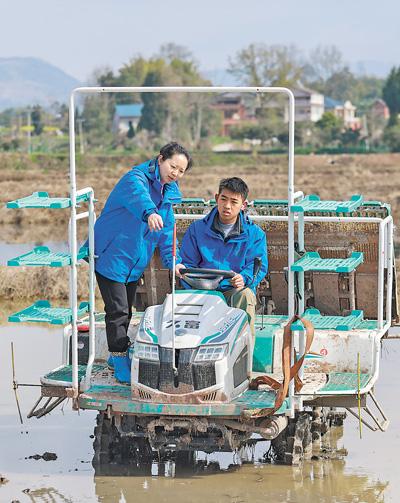 春分時節(jié),重慶市梁平區(qū)的種糧大戶張強駕駛插秧機在田間穿梭,所到之處,嫩綠的秧苗整齊插入田里。“去年在‘田間學?!瘜W的本事,讓我省了不少錢!”他拍了拍沾著泥點的褲腿,黝黑的臉上綻開笑容。