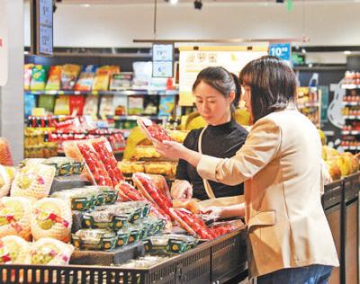 消費者在匯星廣場的超市采購。唐巍 攝