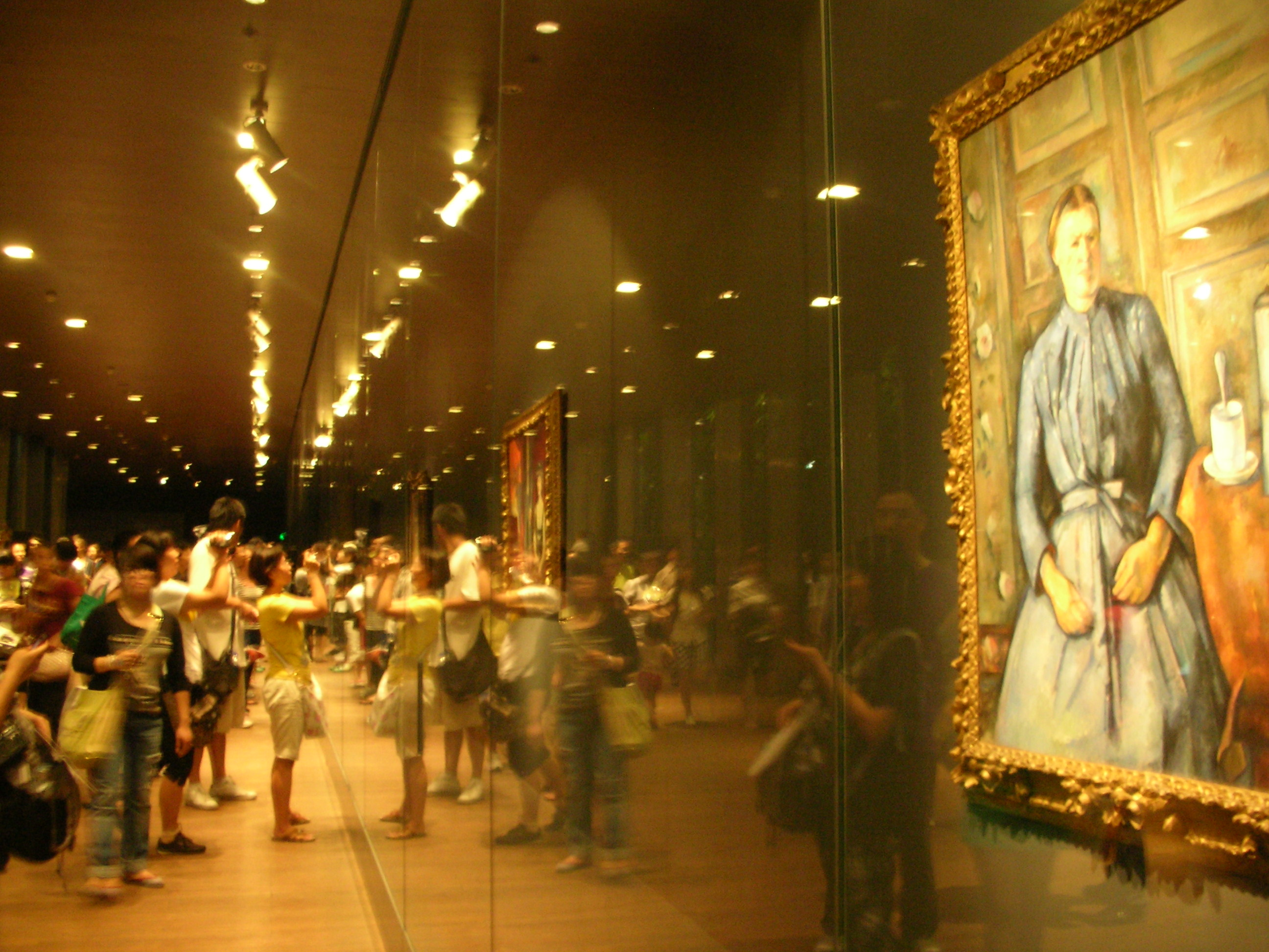 那舞廳是相依為命、生靈擁擠的星球,黃色顏料如淚水要奪“框”而出,黑色節(jié)制著諸多心緒的膨脹。從中我驚喜地會(huì)意到梵高的表情,恍惚還有少時(shí)收藏的那位可親可近的《吉諾太太》的影子。伊見證了梵高與高更驚心動(dòng)魄的友誼,倆人都畫過她。同題畫作不難區(qū)分,因?yàn)楫嬜骺偸菚?huì)注入作者的“自戀”和部分靈魂。吉光片羽般,當(dāng)成長印跡與畫面契合,是一種回家的感覺。