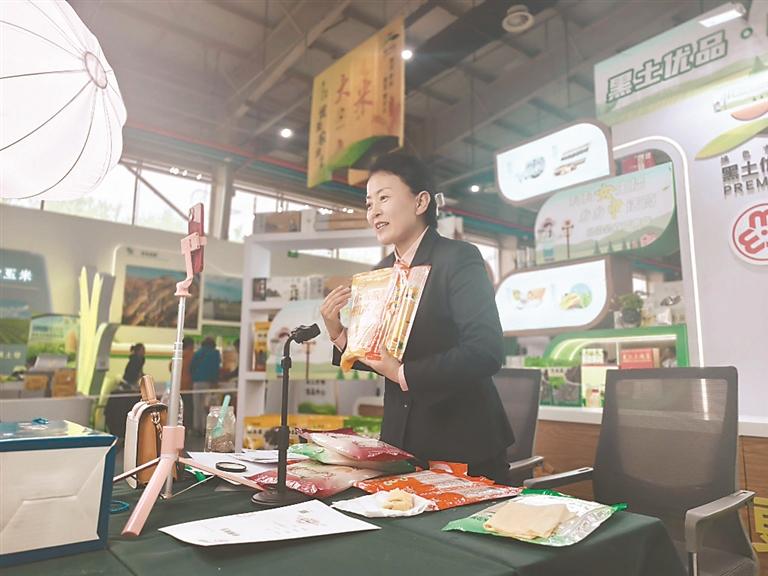 19日,主播五五強勢登陸快手平臺,傾情推介龍江大米、玉米、食用油、山珍、樺樹汁等舌尖美味,為龍江好物插上云端翅膀。開播僅1小時,銷售額即突破20萬,評論區(qū)“求鏈接”不斷刷屏,引發(fā)搶購熱潮。截至21日閉館,展區(qū)線上線下總銷售額突破200萬元。