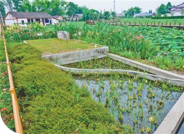 永豐村荷塘邊的微動力污水處理池。楊槐 攝