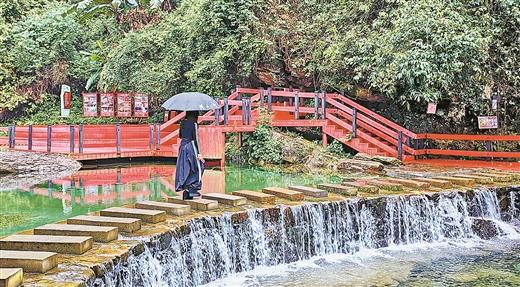景區(qū)內(nèi)一條貫穿整個景區(qū)的紅色棧道格外引人注目。水錦順莊景區(qū)總監(jiān)助理韋炳佳介紹:“特意架高的棧道是為了避開植被使其不被破壞,采用環(huán)保木材建設(shè),雖增加成本卻最大限度保護(hù)生態(tài)。”