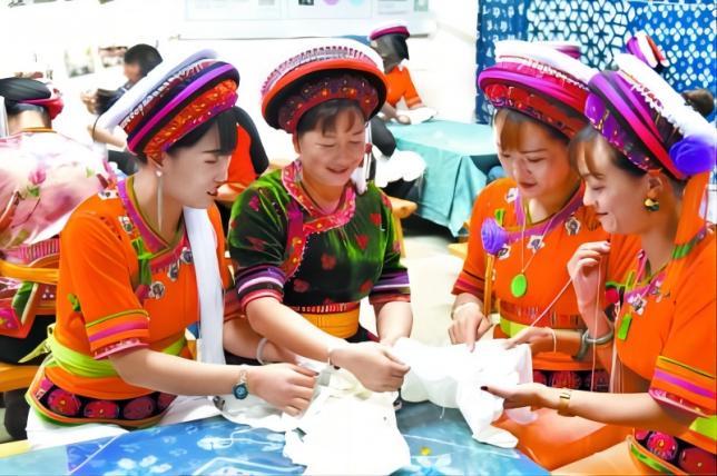 轉(zhuǎn)機(jī)始于2015年。當(dāng)?shù)卣浴胺沁z+產(chǎn)業(yè)”為突破口,實(shí)施了一系列創(chuàng)新舉措:成立扎染協(xié)會(huì)整合170家散戶,建立統(tǒng)一的質(zhì)量標(biāo)準(zhǔn)和價(jià)格體系;組織發(fā)動(dòng)女手藝人對(duì)傳統(tǒng)扎染制品進(jìn)行收集整理、挖掘,搶救傳統(tǒng)圖樣1800多張、模板3600多塊、傳統(tǒng)扎染品700多件,推陳出新扎染花紋圖案至2000多種,投資建成中國(guó)首個(gè)白族扎染博物館,系統(tǒng)展示扎染技藝的千年傳承。
