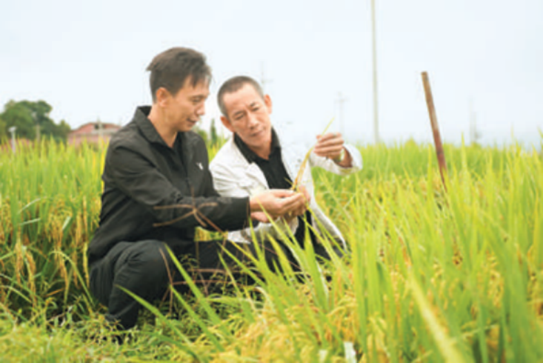 撫州市廣昌縣頭陂鎮(zhèn)頭陂村黨組織書記后備力量符子強(qiáng)(左)向致富能手學(xué)習(xí)水稻種植技術(shù)。