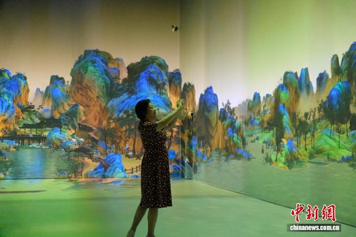 2025年7月,游客在中國歷代繪畫大系典藏館體驗(yàn)“光影丹青”項(xiàng)目。曹丹 攝