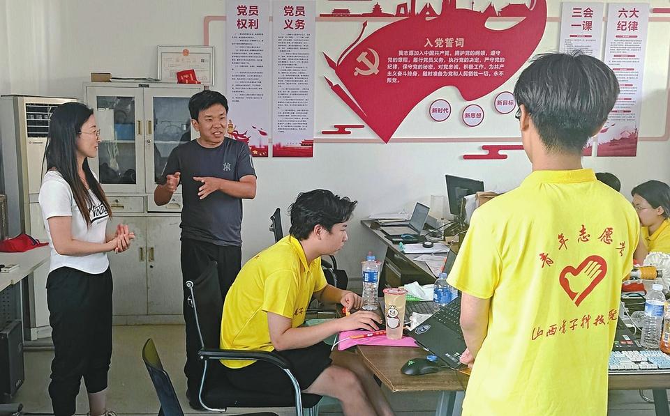 白冰(左二)指導大學生開展暑期社會實踐。記者 張志剛 攝