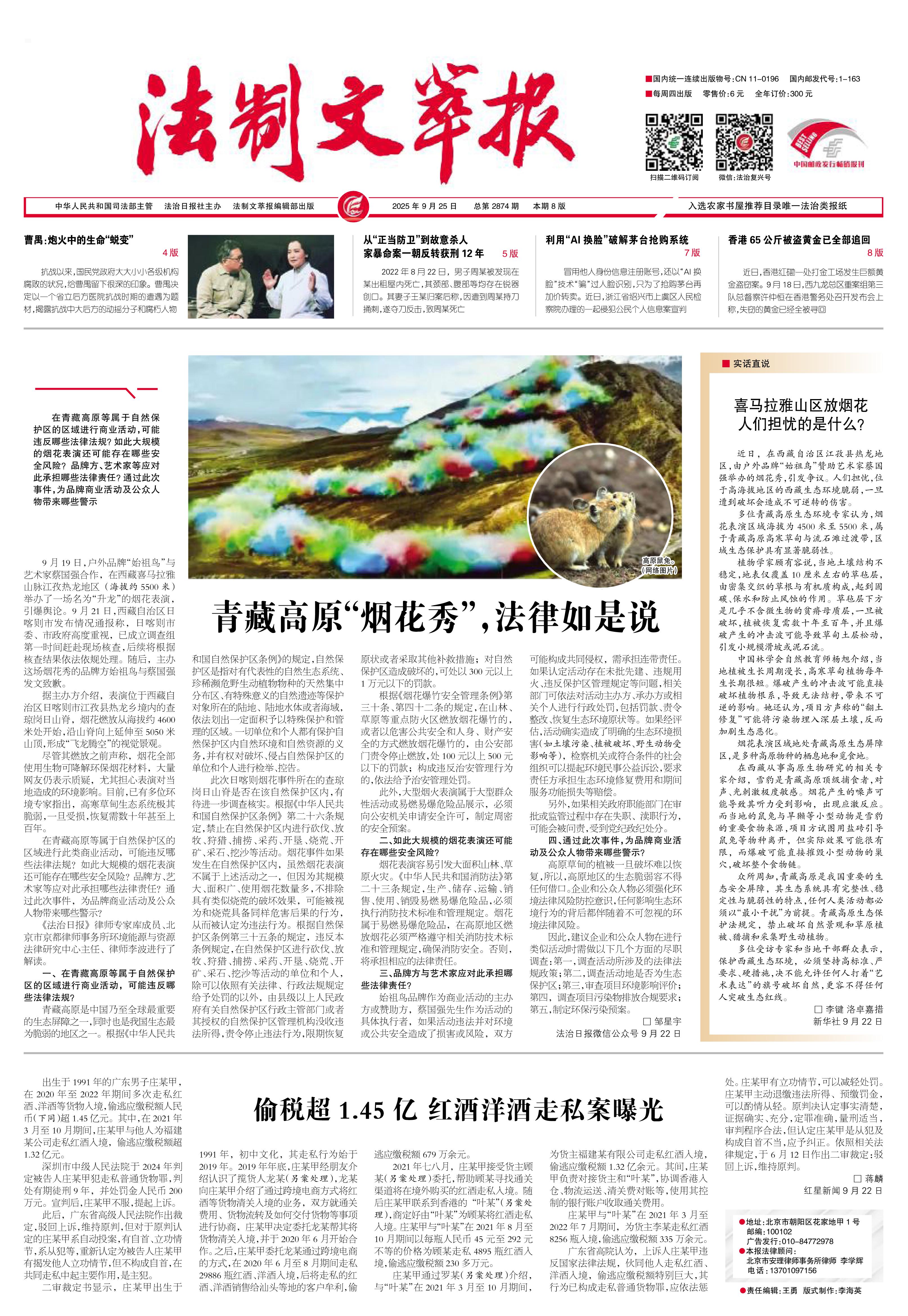 2025年9月25日《法制文萃報》總第2874期1版