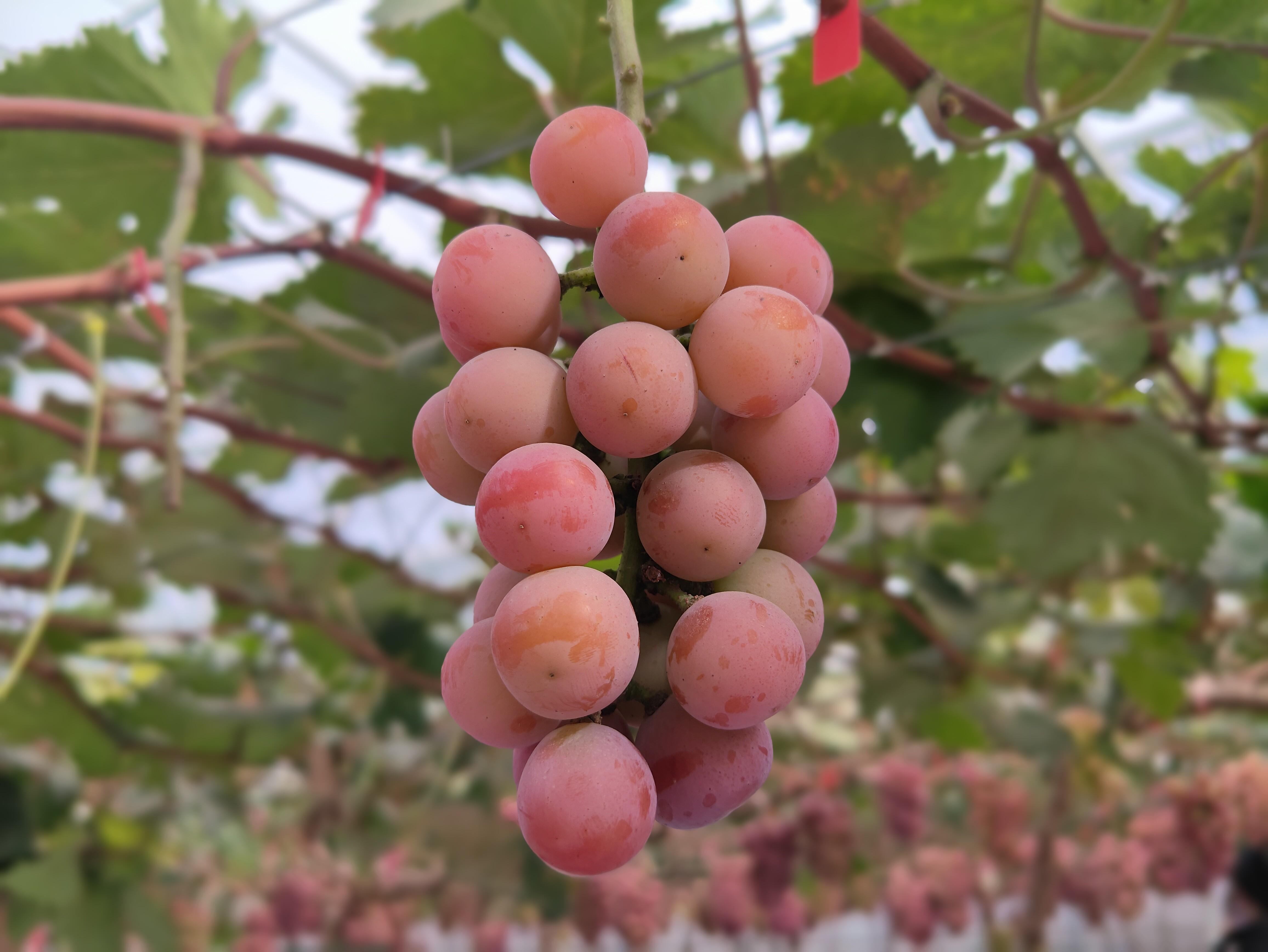 “大家現(xiàn)在看到的‘妮娜皇后’,是從日本引進的高端品種,剛落地園區(qū)時,因為我們管理技術不到位,最后直接停種了?!痹谙銡鉂庥舻钠咸汛笈铮瑢幭南哪苌锟萍加邢薰径麻L李建軍的開場白引發(fā)觀摩隊伍濃厚興致。