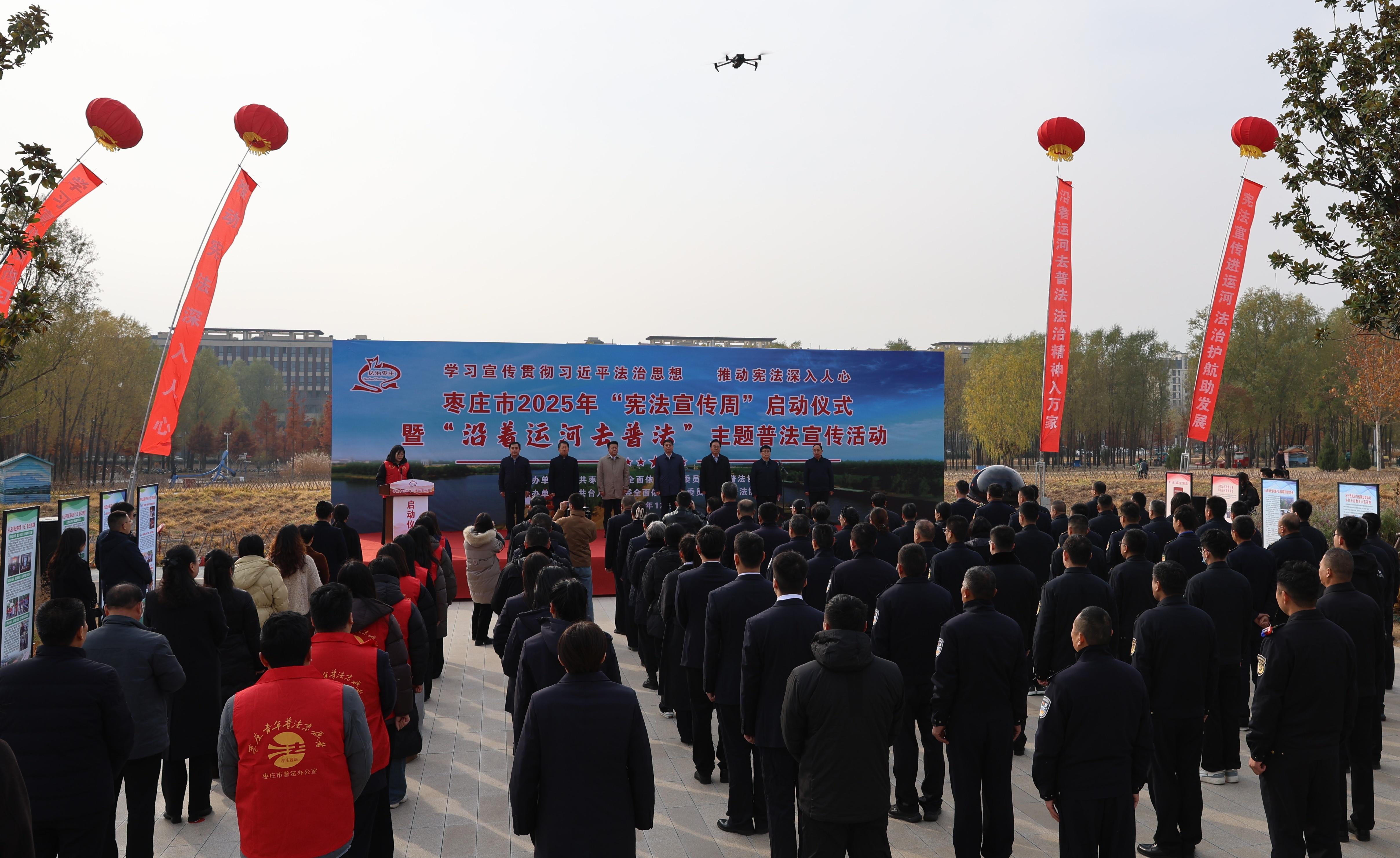 12月2日上午,在第12個(gè)國(guó)家憲法日即將到來(lái)之際,棗莊市2025年“憲法宣傳周”啟動(dòng)儀式暨“沿著運(yùn)河去普法”主題普法宣傳活動(dòng)在臺(tái)兒莊憲法廣場(chǎng)舉行。市委常委、宣傳部部長(zhǎng)、統(tǒng)戰(zhàn)部部長(zhǎng)陳永生,市人大常委會(huì)副主任孫恒,市司法局黨組書記、局長(zhǎng)孫守春等出席活動(dòng),臺(tái)兒莊區(qū)委副書記、區(qū)長(zhǎng)李軍致辭,市、區(qū)兩級(jí)人大代表和政協(xié)委員、“誰(shuí)執(zhí)法誰(shuí)普法”相關(guān)單位人員、普法志愿者及媒體代表共同參與。