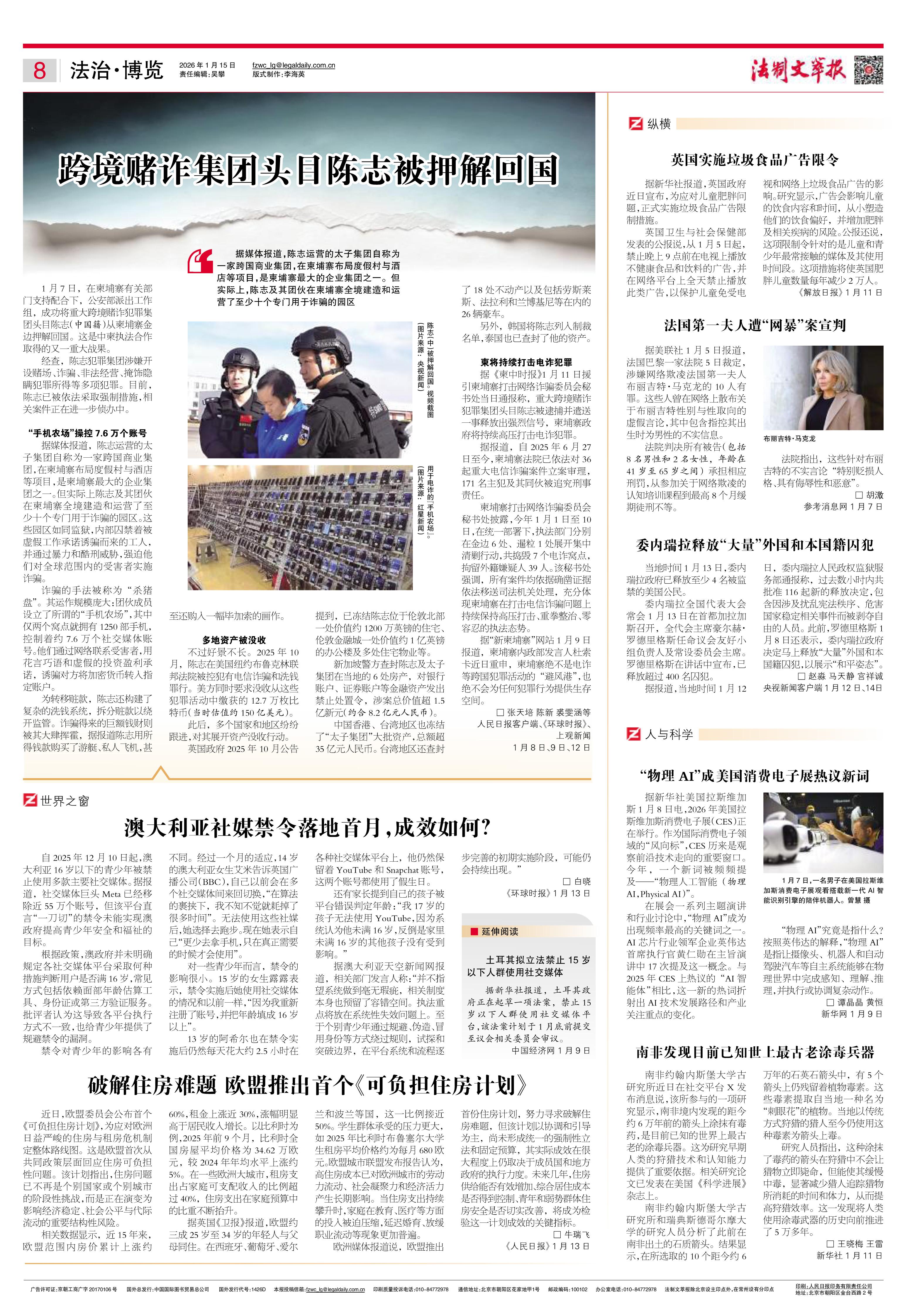 2026年1月15日《法制文萃報》總第2889期8版