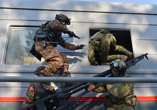 本次聯(lián)演為期11天,以聯(lián)合打擊恐怖主義為主題,按照“實戰(zhàn)化、對抗化、基地化”的思路,區(qū)分聯(lián)合基礎(chǔ)訓練、戰(zhàn)術(shù)協(xié)同訓練、綜合對抗演練3個階段,在俄羅斯新西伯利亞市近郊的“戈爾內(nèi)”訓練中心及周邊地域展開4大類近30個課目的訓練和交流。中國武警部隊和俄國民衛(wèi)隊分別派出獵鷹突擊隊和“葉爾馬克”獨立特種作戰(zhàn)部隊參加。