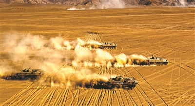 圖①:鐵甲戰(zhàn)車向“敵”陣地發(fā)起進(jìn)攻。