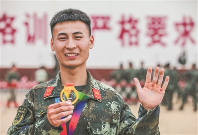 筆者在現(xiàn)場看到,官兵們斗志昂揚(yáng),在比拼體能、技能的同時,展現(xiàn)出過硬的意志品質(zhì)。在器械賽場上,戰(zhàn)士常國浩5分鐘內(nèi)完成了75個標(biāo)準(zhǔn)的單杠卷身上,打破了支隊該項目紀(jì)錄?!白龅降?0個的時候,我的手掌上已經(jīng)磨出了血泡,但是聽到大家的加油聲,我逼著自己不斷超越自我、挑戰(zhàn)極限……”賽后,常國浩激動地告訴戰(zhàn)友。