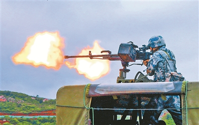 圖②:重機(jī)槍對“敵”實施火力壓制。