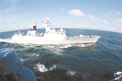 演訓不避險,緊貼實戰(zhàn)練。幾天時間里,編隊訓練全程融入戰(zhàn)術背景,立足實戰(zhàn)需要,先后完成主炮對海射擊、副炮對空射擊、實射火箭深彈、編隊航行補給占位、營救落水人員等20多個課目訓練。