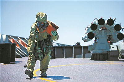 “戰(zhàn)斗警報!”編隊剛剛離港,一場以處置突發(fā)“敵情”為背景的實戰(zhàn)化演練隨即打響,官兵們迅速進入戰(zhàn)斗狀態(tài)。作戰(zhàn)室內,鍵盤聲不絕于耳,口令聲此起彼伏。各艦迅速調整為防御隊形,對來襲“導彈”和“敵”水面艦艇進行防御打擊。霎時,訓練海區(qū)炮火紛飛、硝煙彌漫。