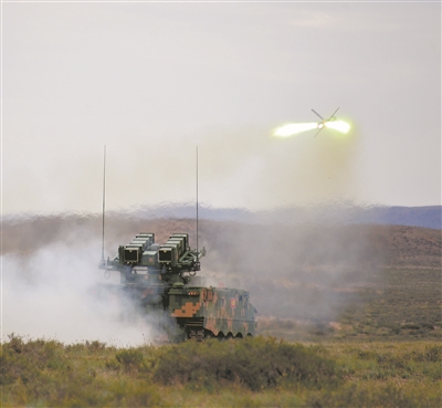 另一作戰(zhàn)地域,面對藍方坦克火力點猛烈打擊,紅方進攻受阻?!?1,我是07,請求支援!”話音剛落,導(dǎo)彈呼嘯而出,直撲“敵”坦克火力點。據(jù)悉,這是該旅剛列裝不久的某新型反坦克導(dǎo)彈武器系統(tǒng)首次參演,即取得4發(fā)4中的佳績。