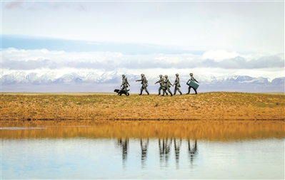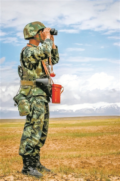 圖①:官兵在無(wú)人區(qū)徒步巡邏。