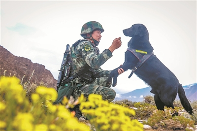 巡邏車(chē)?yán)^續(xù)行駛,軍犬“吉普”因高原反應(yīng)出現(xiàn)嘔吐。“吉普”是一只功勛犬,但到了海拔5000多米的高原,還是有些不適應(yīng)。巡邏官兵便將車(chē)輛停在停車(chē)點(diǎn),改為徒步巡邏。