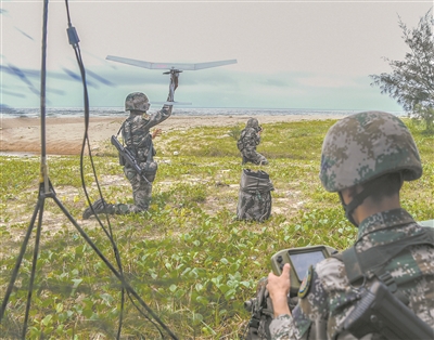 地面,敵后偵察組兵分多路,通過(guò)武裝泅渡、駕舟登陸等方式向目標(biāo)地域隱蔽滲透。同時(shí),破襲組根據(jù)無(wú)人機(jī)偵察獲取的信息,迅速占領(lǐng)有利陣位,對(duì)“敵”目標(biāo)進(jìn)行精準(zhǔn)打擊。