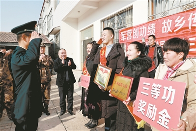 12月22日,火箭軍某部聯(lián)合江蘇省豐縣人武部、縣退役軍人事務(wù)局,向榮立三等功的豐縣籍軍人張燦燦家庭送上立功喜報(bào)和獎(jiǎng)勵(lì)金,營(yíng)造尊崇軍人的濃厚氛圍。高榮光攝