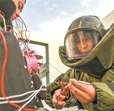 演訓(xùn)場上,其他演練課目接連展開,砥礪官兵實戰(zhàn)能力。某大隊應(yīng)用激光模擬對抗系統(tǒng),組織紅藍對抗;排爆分隊設(shè)置復(fù)雜現(xiàn)場環(huán)境,排除“人質(zhì)”身上捆綁的“爆炸物”;偵察分隊實施抵近偵察,開展突入房屋訓(xùn)練……