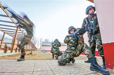 2月6日上午,武警第一機動總隊某支隊營區(qū)突然響起急促的戰(zhàn)斗警報聲,一場反恐演練拉開戰(zhàn)幕,特戰(zhàn)隊員緊急集合奔向戰(zhàn)位。