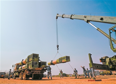 齊心協(xié)力吊裝導(dǎo)彈。