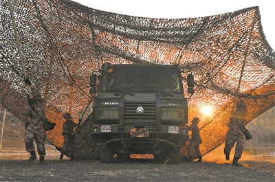 對(duì)車輛進(jìn)行偽裝隱蔽。