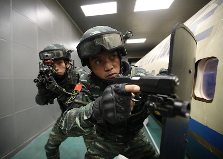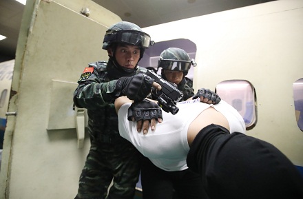扮演歹徒的藍(lán)軍不按套路出牌,將飛機(jī)艙門用鐵絲鎖死,突擊隊(duì)員從艙外拉拽幾次無法突入。此時(shí),身為現(xiàn)場指揮員的彭星果斷下令,改用突擊車掛鎖拖拽、強(qiáng)行破門,兵分三路突入艙內(nèi)。當(dāng)槍聲突然從身后響起時(shí),藍(lán)軍被打了個(gè)措手不及,6名“歹徒”全部被“擊斃”。