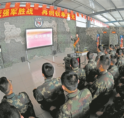 駐訓官兵參加黨史學習教育。