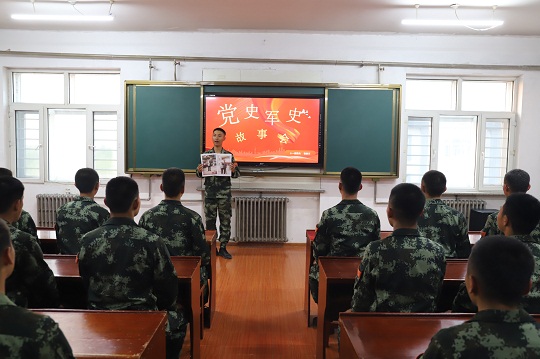 站在講臺(tái)上演講的叫崔浩天,是武警黑龍江總隊(duì)齊齊哈爾支隊(duì)剛?cè)胛榈男卤_@個(gè)演講是支隊(duì)開(kāi)展的“黨史軍史故事會(huì)”系列活動(dòng)。