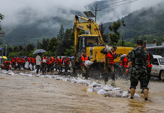 截至6月10日6時30分,馬劍、陶朱、姚江、五泄、應(yīng)店街等鎮(zhèn)街累計(jì)雨量超過170毫米,全市平均雨量達(dá)60.5毫米。10日1時30分許,武警紹興支隊(duì)接到緊急求援電話后,立即啟動抗洪搶險(xiǎn)應(yīng)急預(yù)案,先后出動65名官兵馳援受災(zāi)一線。